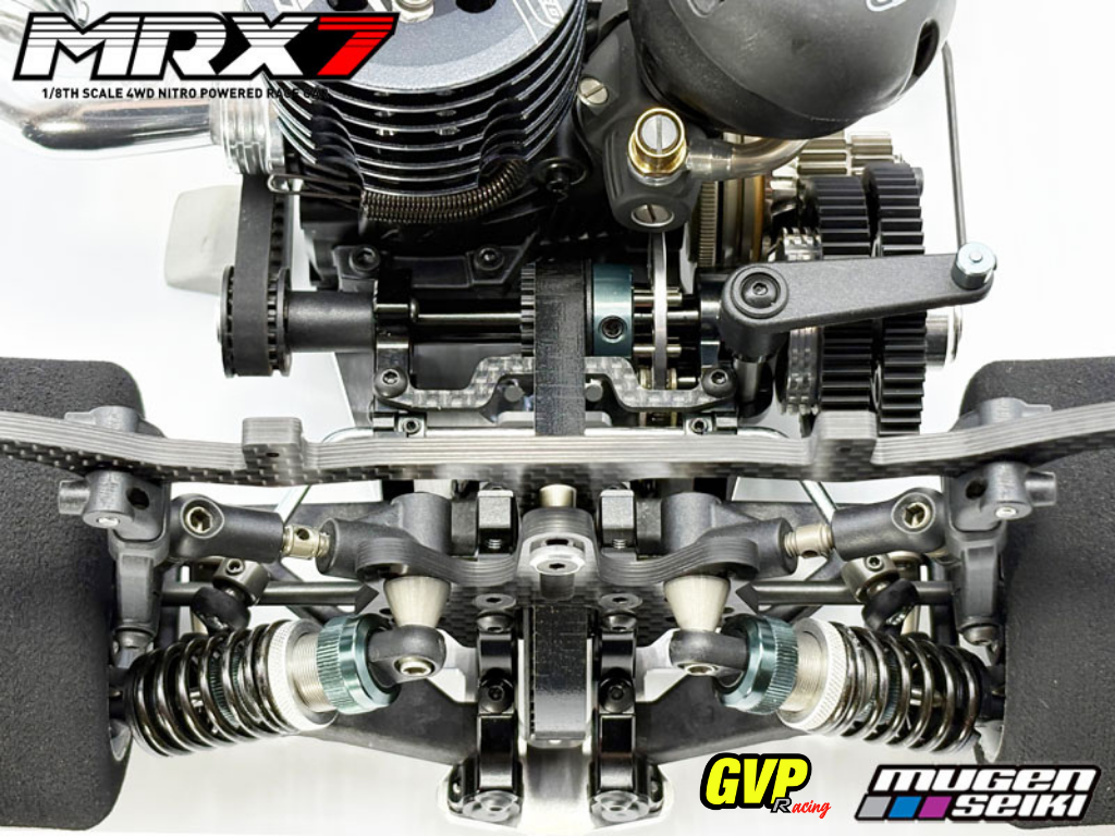 La MRX7 a été entièrement adaptée aux exigences actuelles de la catégorie 1/8 sur route et intègre quelques pièces de son prédécesseur à succès. L'équipe de Mugen Seiki a passé beaucoup de temps à tester, repenser les pièces existantes, ajuster la géométrie de la suspension et améliorer la répartition du poids. Les nouvelles fonctionnalités suivantes sont incluses dans le kit.